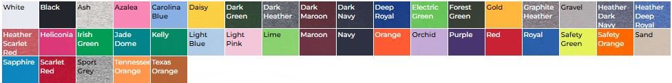 Heather Dark Navy, Heather Deep Royal and Heather Scarlet Red are 65/35 polyester/cotton